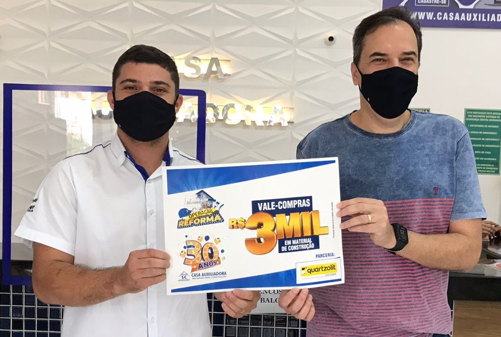 O último sorteio da promoção Operação Reforma 30 anos Casa Auxiliadora aconteceu no dia 29 de outubro. O décimo sorteado foi Cláudio Boy Guimarães, que ganhou R$ 3 mil em materiais de construção.