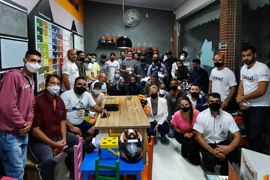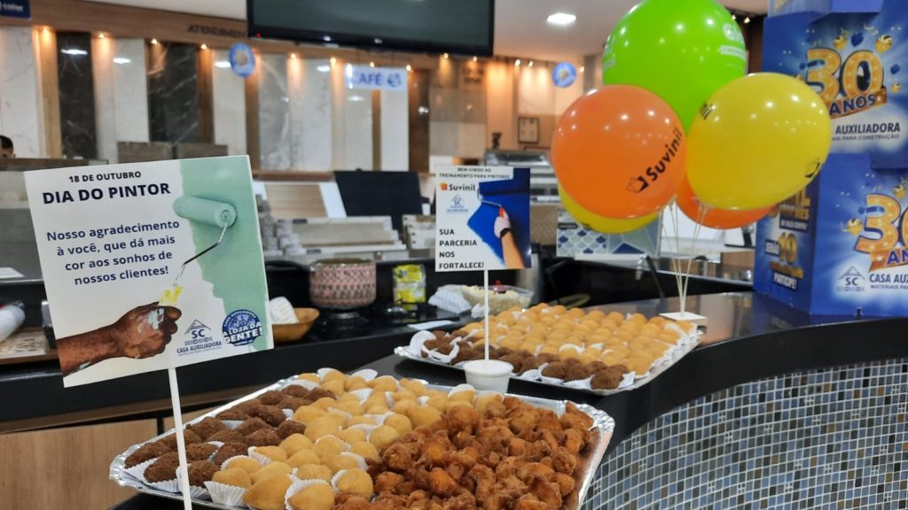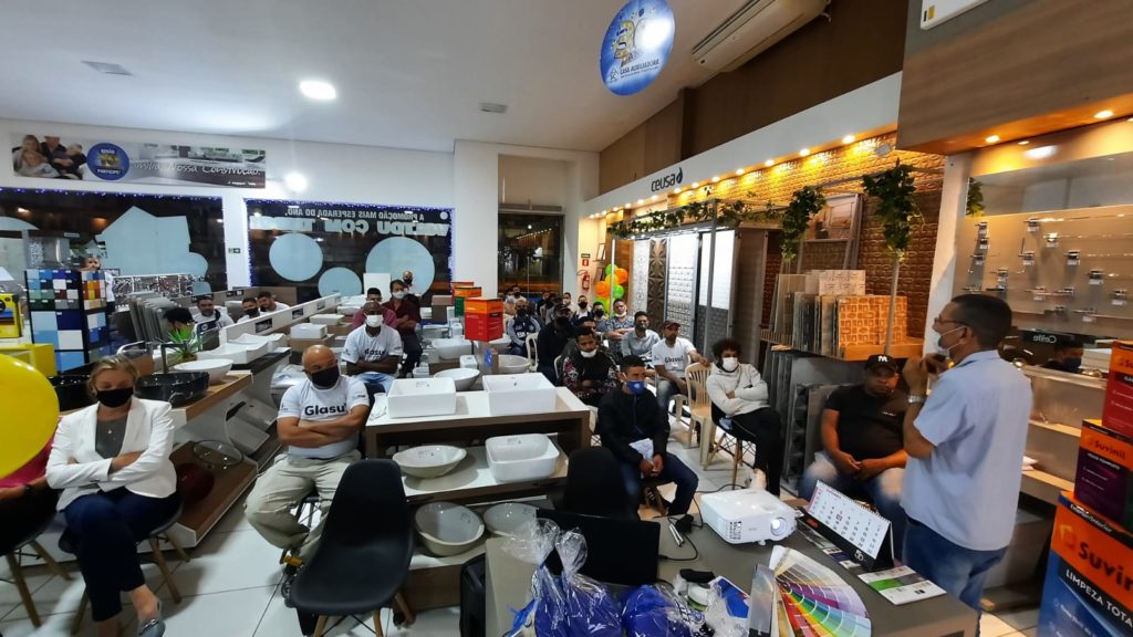 A Casa Auxiliadora comemorou o Dia do Pintor com um treinamento para parceiros e colaboradores, no dia 21 de outubro. O encontro reuniu mais de 20 profissionais da área, seguindo os protocolos de segurança. O representante da Suvinil, Osvaldo Ferreira, apresentou a novidade da marca: a Glasu! Os pintores receberam brindes e participaram de sorteios.