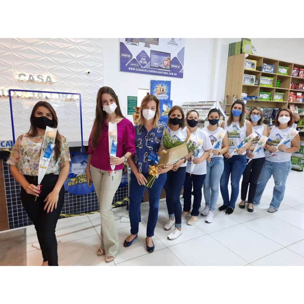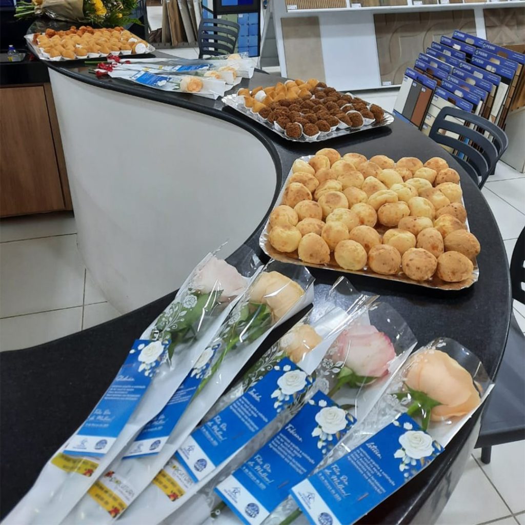 As colaboradoras da Casa Auxiliadora comemoraram o Dia Internacional da Mulher, 8 de março, com rosas e um delicioso café da tarde.