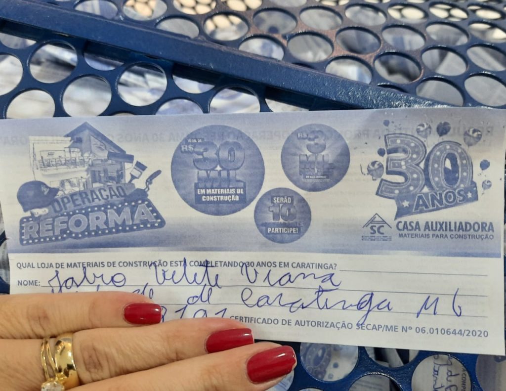 O sexto ganhador da promoção Operação Reforma 30 anos Casa Auxiliadora é Jairo Viana. Ele foi sorteado no dia 25 de junho e já buscou seu vale-compras de R$ 3 mil em materiais de construção.
